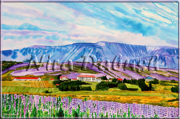 | The Landscape of Lupina & Esja, Iceland. Inspired by the photographer, Sigridur Bachmann. Watercolour. 50CM X 35CM. 2009. |
