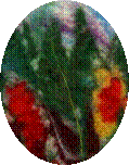 window boxes in green and yellow had red geraniums popping out. In this extended