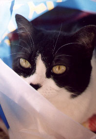 Sumsum inside Ikea's bag testing the new blanket -2004